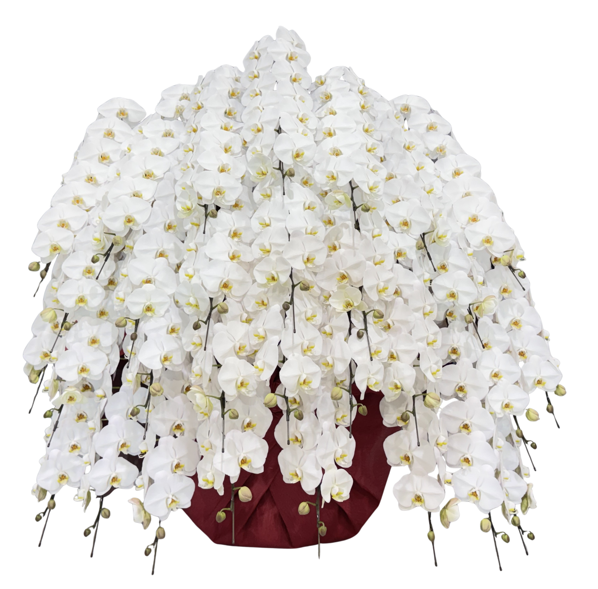 大阪市内限定でお届けする、当店最高峰の超豪華30本立胡蝶蘭です。360輪以上という圧倒的な輪数を誇り、その壮麗な姿はまさに別格。どんな豪華な会場でも主役級の存在感を放ち、受け取る方に深い感動と敬意を伝えます。大切な節目や特別なお祝い、格式を示したい場面にふさわしい、当店が自信をもってお届けする最高ランクの逸品です。