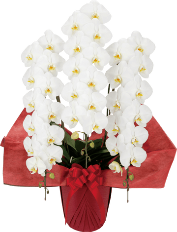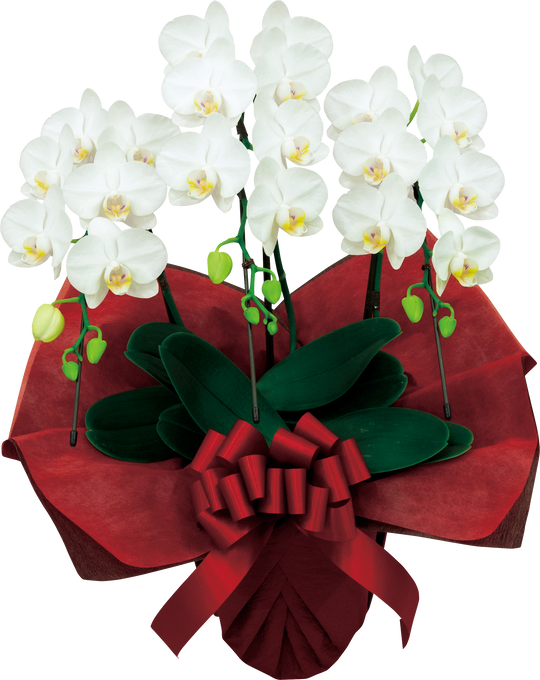 胡蝶蘭は1〜3ヶ月という長い期間花を咲かせ続けるため、長寿を願う気持ちと重なり合います。また、花粉や香りが少ないため、ご年配の方にも優しく、室内で気軽に楽しんでいただけます。